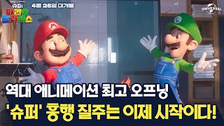 따단-딴-따단-딴 ♫ 전 세계를 열광시킬 올 타임 슈퍼 어드벤처의 등장! 뉴욕의 평범한 배관공 형제 '마리오'와 ‘루이지’는 배수관 고장으로 위기에 빠진 도시를 구하려다 미스터리한 초록색 파이프 안으로 빨려 들어가게 된다. 파이프를 통해 새로운 세상으로 차원 이동하게 된 형제. 형 '마리오'는 뛰어난 리더십을 지닌 '피치'가 통치하는 버섯왕국에 도착하지만 동생 '루이지'는 빌런 '쿠파'가 있는 다크랜드로 떨어지며 납치를 당하고 ‘마리오’는 동생을 구하기 위해 ‘피치’와 ‘키노피오’의 도움을 받아 '쿠파'에 맞서기로 결심한다. 그러나 슈퍼스타로 세상을 지배하려는 그의 강력한 힘 앞에 이들은 예기치 못한 위험에 빠지게 되는데...!